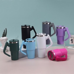 20/30/40oz回転ハンドルカーカップ304ステンレススチール真空断熱カップ屋外ポータブル車吸引チューブカップ