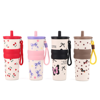500ml学生カップル大人かわいい316ステンレス鋼ストロー水ボトル水カップハンドル付き