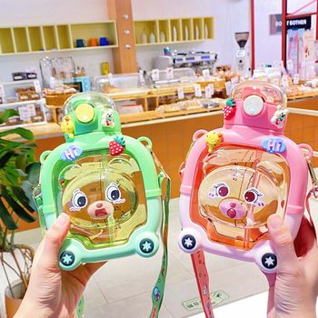 500/600ml夏の子供学生キッズガールボーイ屋外かわいい漫画ポータブルハンドルストラップストロープラスチックウォーターボトル