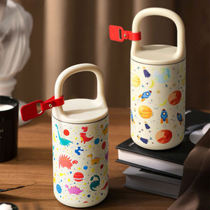 Karikatür sevimli açık taşınabilir öğrenci çocuklar 316 paslanmaz çelik sıcak su şişesi saman fincan
